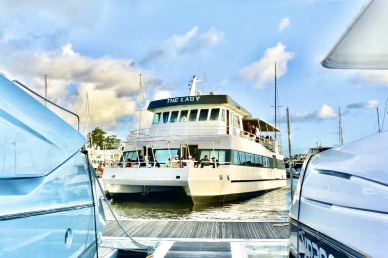 ‘The Lady’ began her life in Queensland hosting corporate functions. She graduated to becoming a specialist wedding venue. The vessel is now comfortably berthed at Sanctuary Cove’s World Class Marina.